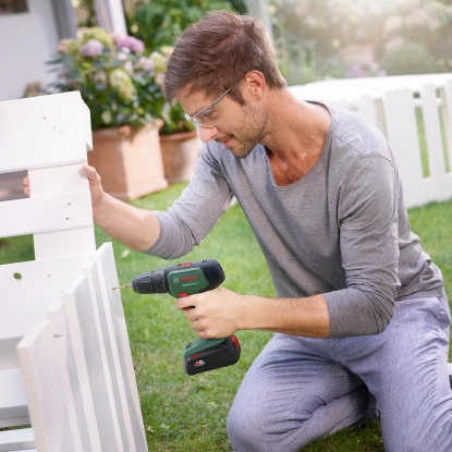 Der praktische Bosch Akkuschrauber UniversalDrill 18V ist ein leichter und kompakter Bohrschrauber für vielseitige Schraub- und Bohranwendungen in Holz, Metall und Kunststoff. Das durchdachte Akku-Gerät bietet Ihnen dank kabellosen Betriebs maximale Bewegungsfreiheit beim Schrauben.