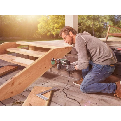 Mithilfe des belastbaren Schnellspannbohrfutters können Sie Bohr- und Schraubaufsätze schnell und unkompliziert wechseln. Es besitzt eine Aufnahme mit einem Ø von 13 mm und ist damit für entsprechende Bits und Bohrer geeignet. Die maximalen Bohrdurchmesser betragen 12 mm in Stahl, 30 mm in Holz und 14 mm in Beton.