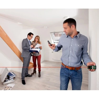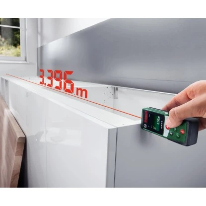 Der Bosch Laser-Entfernungsmesser PLR 40 C ist ein hilfreiches Messgerät zum Messen von Längen, Flächen und Volumina. Das Lasermessgerät ist ideal zur Flächen- und Entfernungsberechnung geeignet um beispielsweise Räume und Entfernungen auszumessen oder die benötigte Farb- oder Tapetenmenge für die nächste Renovierung zu berechnen.