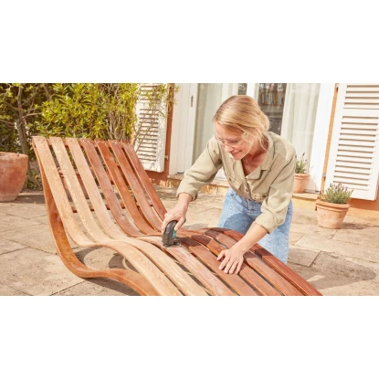 Der Bosch EasyCurvSander 12 V ist Akku-Tellerschleifer und -Polierer zugleich. Drei rotierende, bewegliche Scheiben passen sich problemlos an gebogene, abgerundete und flache Oberflächen an, die ektronische Drehzahlvorwahl sorgt dabei für die perfekte Drehzahl passend zu Arbeit und Material.