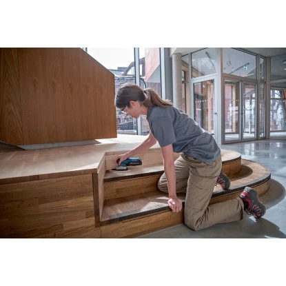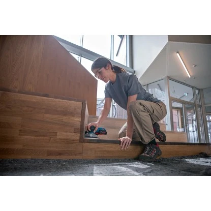 Der GSS 18V-13 Professional bietet optimale Kontrolle auf größeren Oberflächen. Dies wird erreicht durch eine ausgezeichnete Werkzeugbalance mit Schwerpunktlage nahe am Werkstück und der hervorragenden Ergonomie von Handablage und Griff. Sein bürstenloser Motor und das Bosch Professional 18V System garantieren schnellen Arbeitsfortschritt – empfohlen wird der Akku ProCORE18V 4.0Ah. Dank seines intuitiven Konzepts und dem System mit austauschbaren Schleifplatten ist er einfach zu bedienen.