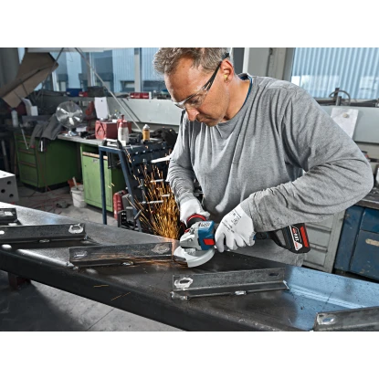 Mit einer Drehzahl von bis zu 10.000 /min (Umdrehungen) zeichnet sich der Bosch Winkelschleifer durch eine herausragenden Abtrags- und Schnittleistung aus. Der 4-polige Hochleistungsmotor entspricht in seiner Leistung der eines kabelgebundenen 800 W Schleifers. Er sorgt für eine optimale Kraftentfaltung und ist darüber hinaus sehr robust und belastbar. Dank seines geringen Gewichtes von nur 2,3 kg und seiner kompakten Bauform ist der Schleifer auch für das Arbeiten über Kopf und an engen Stellen geeignet. Er ist kompatibel mit Trennscheiben, die einen Durchmesser von 125 mm haben.