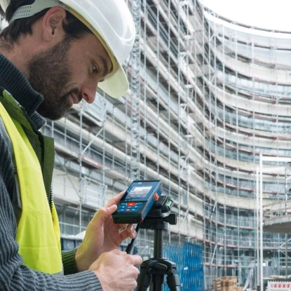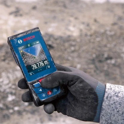 Der Bosch Professional Laser-Entfernungsmesser GLM 100-25 C für den Außenbereich verfügt über eine digitale Kamera-Zieloptik mit Zoomfunktion, die Entfernungen bis 100 m präzise misst. Ob Architekten, Bauleiter oder Elektriker, das Messgerät ist das ideale Hilfsmittel auf Baustellen.
