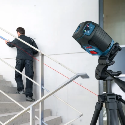 Ob für den Trockenbau, Übertragung von Lotpunkten, Setzen von Referenzmarken oder diagonales Ausrichten für Treppengeländer, der Bosch Professional Linienlaser GCL 2-15 überzeugt mit seiner kompakten Bauform und eignet sich für alle Nivellierarbeiten auf kurzer Distanz.