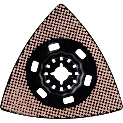 Der Bosch Schleifteller AVZ 90 RT10 Körnung 100 für Multifunktionswerkzeuge Ø 90 mm eignet sich ideal beim Entfernen von Mörtel und Fliesenkleber, Fugenmörtel, Teppichkleberrückständen von mineralischen Oberflächen und zum Raspeln von Holz für grobe Formanpassungen. Die mit widerstandsfähigem Hartmetallkorn der Körnung 20 besetzte Schleifkante sorgt für eine hohe Verschleißresistenz und lange Nutzungsdauer und der offene Hartmetallbesatz ermöglicht Ihnen einen starken Metallabtrag ohne Zusetzen oder Ablagerung. Der deltaförmige Teller macht exakte Schleifarbeiten auch in schwer zugänglichen Ecken möglich und das Profi-Aufnahmesystem für den Teller sorgt zudem für eine maximale Kraftübertragung zwischen Maschine und Zubehör.