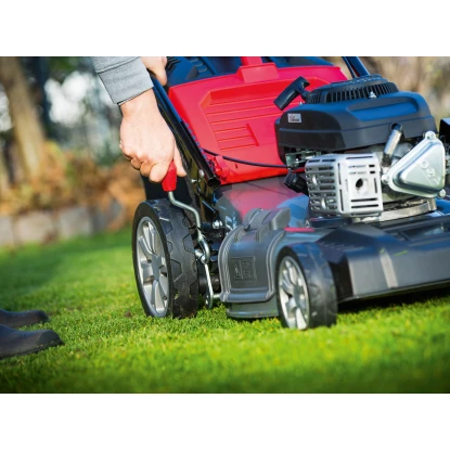Die Vorwärtsbewegung erfolgt mithilfe des Randantriebes durch Motorkraft, sodass bei längeren Bahnen viel Kraft gespart wird. Die kugelgelagerten Hinterräder ermöglichen ein leichtgängiges Fahren. Sie erzielen somit ein sauberes Schnittbild und gleichen Bodenunebenheiten aus. Die zentrale Schnitthöhenverstellung ist in sieben verschiedenen Positionen von 25 mm – 75 mm einstellbar.