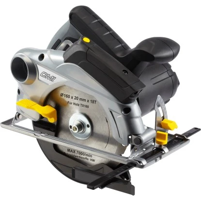 Die CMI Handkreissäge ist mit einem leistungsstarken 1.200 W Motor ausgestattet und einer Leerlaufdrehzahl von 4.700/min (Umdrehungen). Die Sägeblattgröße beträgt 160 mm x 20 mm. Die maximale Schnittkapazität beträgt 55 mm bei 90° und 35 mm bei 45°. Die Handkreissäge ist für eine perfekte Schnittführung mit einem Laser sowie für die Sicherheit während des Arbeitens mit einem Softgrip ausgestattet. Im Lieferumfang ist folgendes Zubehör enthalten: Parallelanschlag, Sechskantschlüssel.