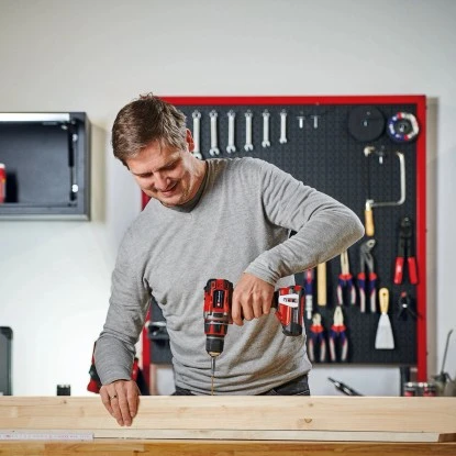 Der handliche Einhell Akku-Bohrschrauber Power X-Change TP-CD 18/35 Li Solo hilft Ihnen bei mittelschweren bis schweren Bohr- und Schraubarbeiten in Holz und anderen Materialien sowie beim Möbelbau. Das durchdachte Akku-Gerät bietet Ihnen dank kabellosen Betriebs maximale Bewegungsfreiheit beim Schrauben und Bohren und lässt sich jederzeit unabhängig von Stromquellen flexibel einsetzen.
