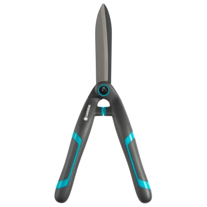Mit der Schere von Gardena schneiden Sie präzise und sicher Hecken, Büsche und Sträucher. Aufgrund des geraden Schliffs ist sie die ideale Heckenschere für den exakten Formschnitt. Die Gartenschere ist perfekt ausbalanciert und macht das Schneiden besonders leicht.