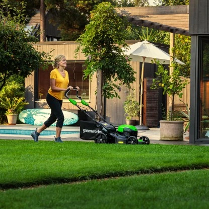 Der Akku-Rasenmäher GD40LM46SP von Greenworks fährt von selbst und eignet sich für mittelgroße bis große Rasenflächen. Der Akku-Mäher ermöglicht einen kabellosen Betrieb und bietet somit maximalen Bewegungsfreiraum beim Mähen.