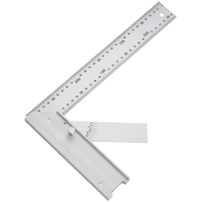 Der LUX-TOOLS Winkel mit Zunge und eloxierter Skala hat eine mit 5°- Einteilung versehene Zusatzzunge im Griff und ist damit auch als Winkelmesser verwendbar.