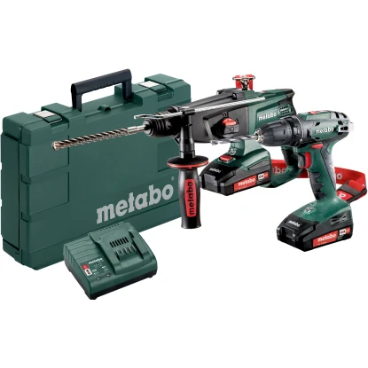 Das Metabo Akkuset Combo 2.3.2 18 V mit BS 18 und KHA 18 LTX im Kunststoffkoffer enthält den kompakten Akku-Bohrschrauber BS 18. Er verfügt über eine kurze Bauform und ist somit für viele Einsätze verwendbar. Außerdem erhalten Sie auch den starken Akku-Kombihammer KHA 18 LTX. Dieser ermöglicht Ihnen das Hammerbohren, Bohren und Meißeln. Die beiden Metabo-Akku-Geräte sind zusammen mit seinem Zubehör in einem praktischen Kunststoffkoffer verstaut. So haben Sie alles beisammen und können das Akkuset einfach verstauen.