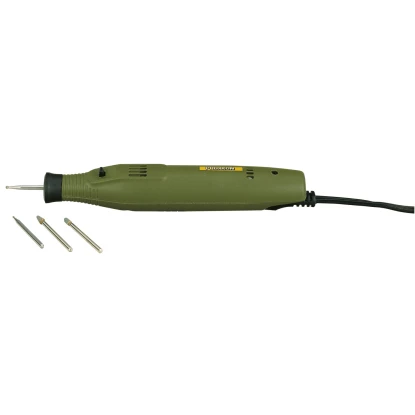 Das Proxxon Graviergerät GG 12 verfügt über einen leisen und langlebigen DC-Spezialmotor. Durch die kompakte Größe und das leichte Gewicht von nur 50 g ist dieses Gerät besonders handlich.