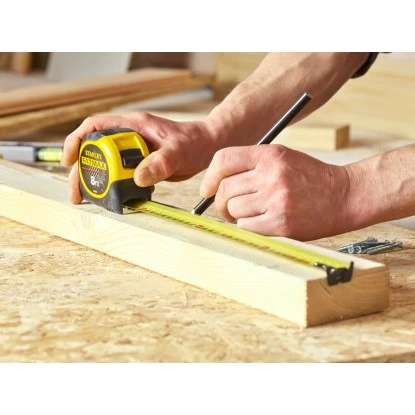 Für Arbeiten in anspruchsvollen Umgebungen ist das Stanley FatMax Bandmaß Armor 0-33-728 durch die Mylar® Schutzschicht sowie die Blade Armor Spezialfolie bestens ausgerüstet. Gegenüber einem lackierten Band wird durch die Mylar®-Beschichtung für eine 10 x höhere Abriebfestigkeit gesorgt. Mit der Blade Armor Versiegelung wird zudem das Bruchrisiko um 90 % reduziert. Hiermit erhöhen Sie die Lebensdauer des Maßbandes um das Doppelte. Für einen optimalen Griff und Schlagfestigkeit sorgt das DynaGrip Gehäuse aus Bi-Material. Der kontrollierte Bandrücklauf schützt den großen Endhaken, der durch seine Verschiebbarkeit auch Innen- und Außenmessungen ermöglicht. Mit dem praktischen Gürtelclip aus Stahl kann das Bandmaß immer griffbereit am Gürtel oder Kleidung befestigt werden.