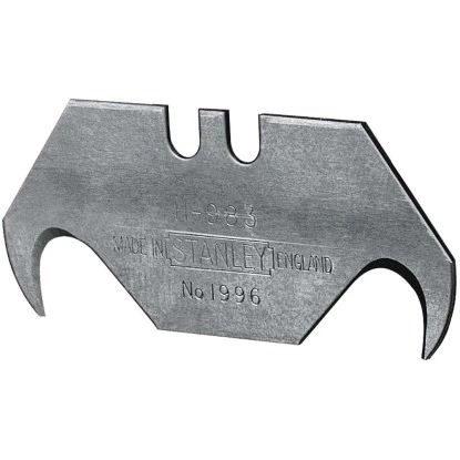 Die Stanley Hakenklingen im 10er Spender ist besonders geeignet zum Schneiden von Verpackungen, Bodenbelägen und Plastik-Verschalungen. 50 mm Klingenlänge.