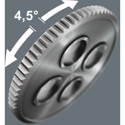 Der Wera Quergriff-Bits-Handhalter 416 RA besitzt eine Ratschenfunktion und ein Schnellwechselfutter. Die integrierte Ratsche mit Feinverzahnung (80 Zähne/Rückholwinkel 4,5°) vereinfacht und beschleunigt das Schrauben ohne mühsames Neuansetzen. Die vollständig in den Griff eingebettete Knarrenmechanik sorgt für sehr handliches und angenehmes Arbeiten. Die ergonomische Form des Griffs füllt den Handballen gut aus, die Finger liegen sicher in den weich gerundeten Griffmulden. Die ganze Hand findet Kontakt zum Griff, Reibungsverluste zwischen Hand und Griff werden vermieden. Dank eines Umschalthebels kann der Rechts/Links Richtungswechsel bequem in Einhand-Bedienung erfolgen.