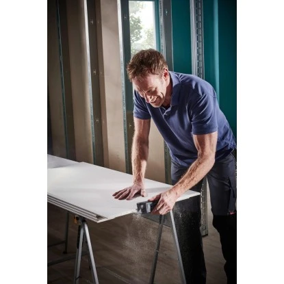 Den soliden Wolfcraft Einhand-Blockhobel mit extrabreiter Raspelfläche können Sie bequem mit nur einer Hand führen. Er eignet sich ideal zum effektiven Nachbearbeiten von Flächen und Kanten auf Gipskarton und Holz. Mit der großen Arbeitsfläche von 150 x 57 mm erzielen Sie einen schnellen und kraftschonenden Arbeitsfortschritt, während Ihre freie Hand das Werkstück bequem in Position halten kann. Das Gehäuse besteht aus stabilem, hochwertigem Kunststoff und liegt durch die ergonomische Form gut in der Hand. Die leistungsstarke Raspelplatte können Sie bei Bedarf wechseln. So profitieren Sie von einem langlebigen und praktischen Helfer, der Ihnen bei zahlreichen Trockenbau- und Holzprojekten zur Seite steht.