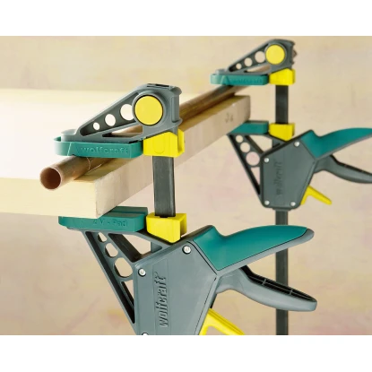 Die kraftvolle Wolfcraft Einhandzwinge für professionelles Arbeiten ermöglicht ein schnelles, sicheres und komfortables spannen mit einer Hand. Sie besitzt eine Spannkraft von bis zu 120 kg und garantiert einfachste Handhabung und sicheren Halt durch einen ergonomischen Griff mit rutschhemmender Zone.